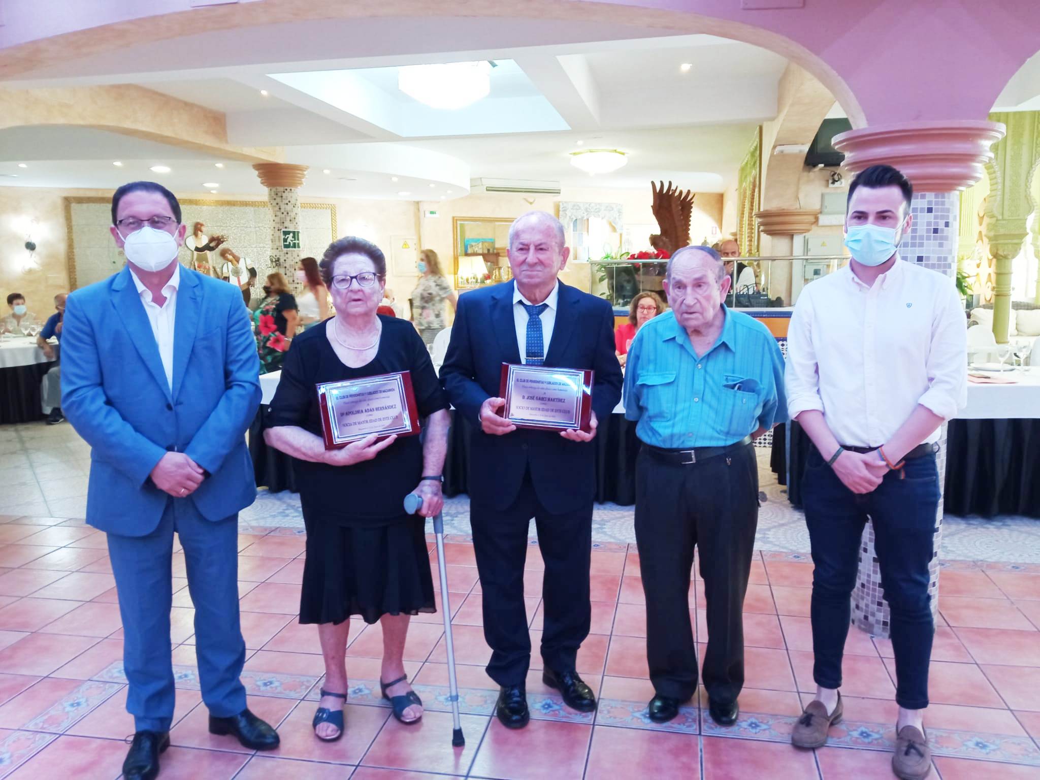 Apolonia Adán Hernández y José García Martínez recibieron el reconocimiento como socios de mayor edad de manos del alcalde y el concejal de Política Social