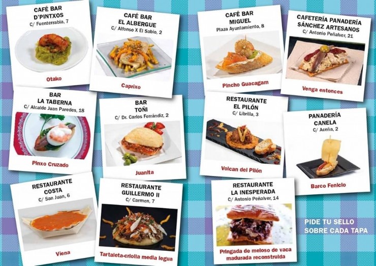 Los establecimientos adheridos este año son: Café Bar D’Pintxos, Café Bar Miguel, Bar La Taberna, Bar Toñi, Restaurante Costa, Restaurante Guillermo II, Café Bar El Albergue, Cafetería Panadería Sánchez Artesanos, Restaurante el Pilón, Panadería Canela, Restaurante La Inesperada.