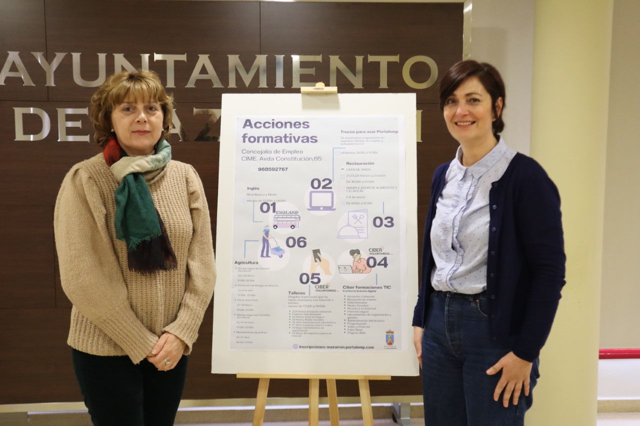 La Concejala responsable del área Plácida Gómez ha presentado esta mañana junto a la técnica de empleo Elisa Martínez, la amplia oferta formativa organizada para mejorar las oportunidades laborales de los vecinos y vecinas de Mazarrón.